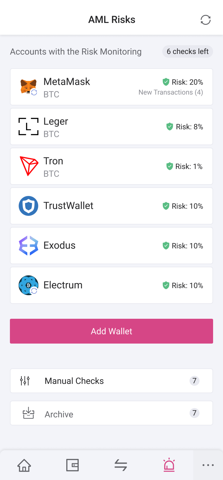 To help keep track, the number of remaining AML checks is also indicated in the header.